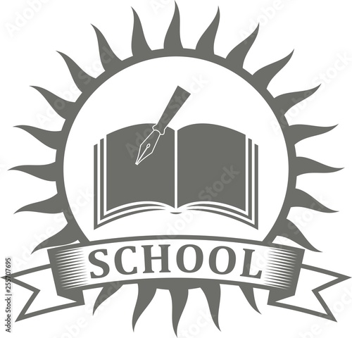 Black And White Illustration Of A School Logo A Sun Banner With